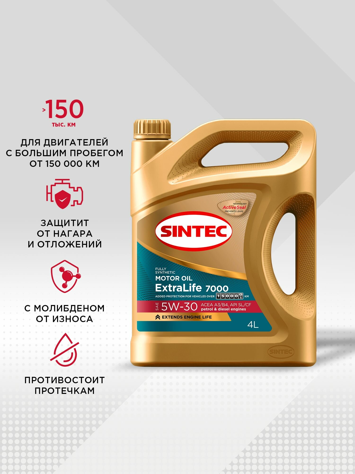 Моторные масла Моторное масло SINTEC EXTRALIFE 7000 SAE 5W-30, API SL/CF, ACEA A3/B4 Синтетическое 4 л