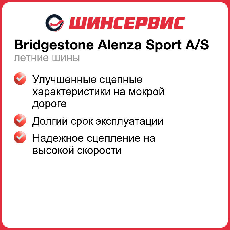 Bridgestone Alenza Sport A/S 235/50 R20 104T 30 080 ₽ Подробнее