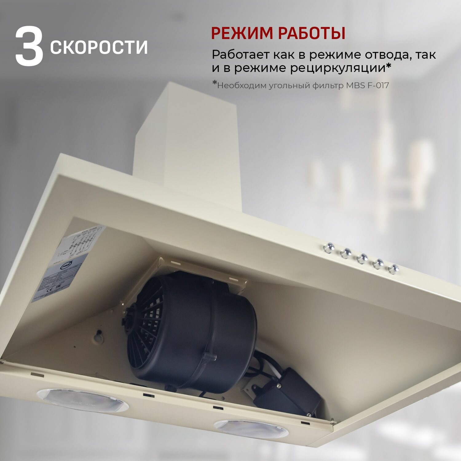 Вытяжки Кухонная вытяжка MBS GERBERA 150 IVORY/50 см/производительность 650м3/ч, низкий уровень шума.
