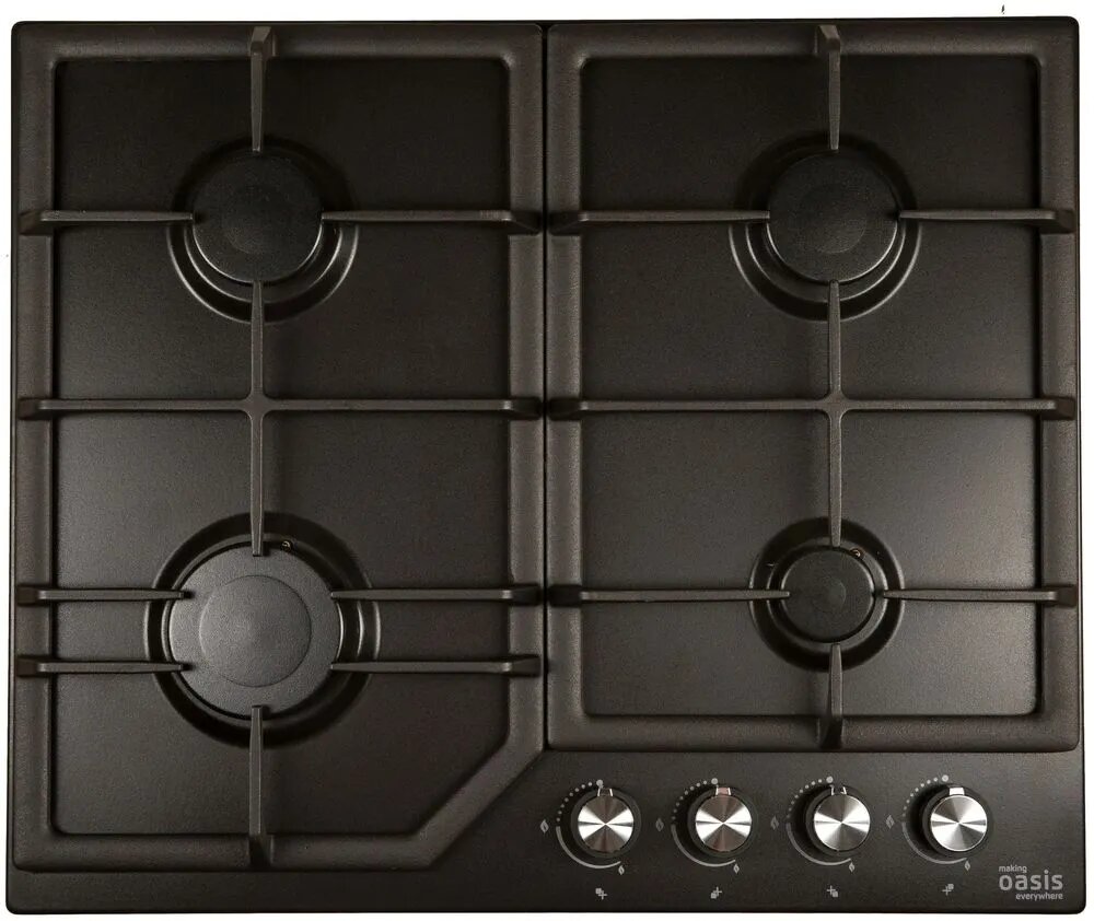 Варочная поверхность Варочная панель встраиваемая Oasis P-MBR, эмаль, черная, газ-контроль, чугунные решетки, 4 конфорки