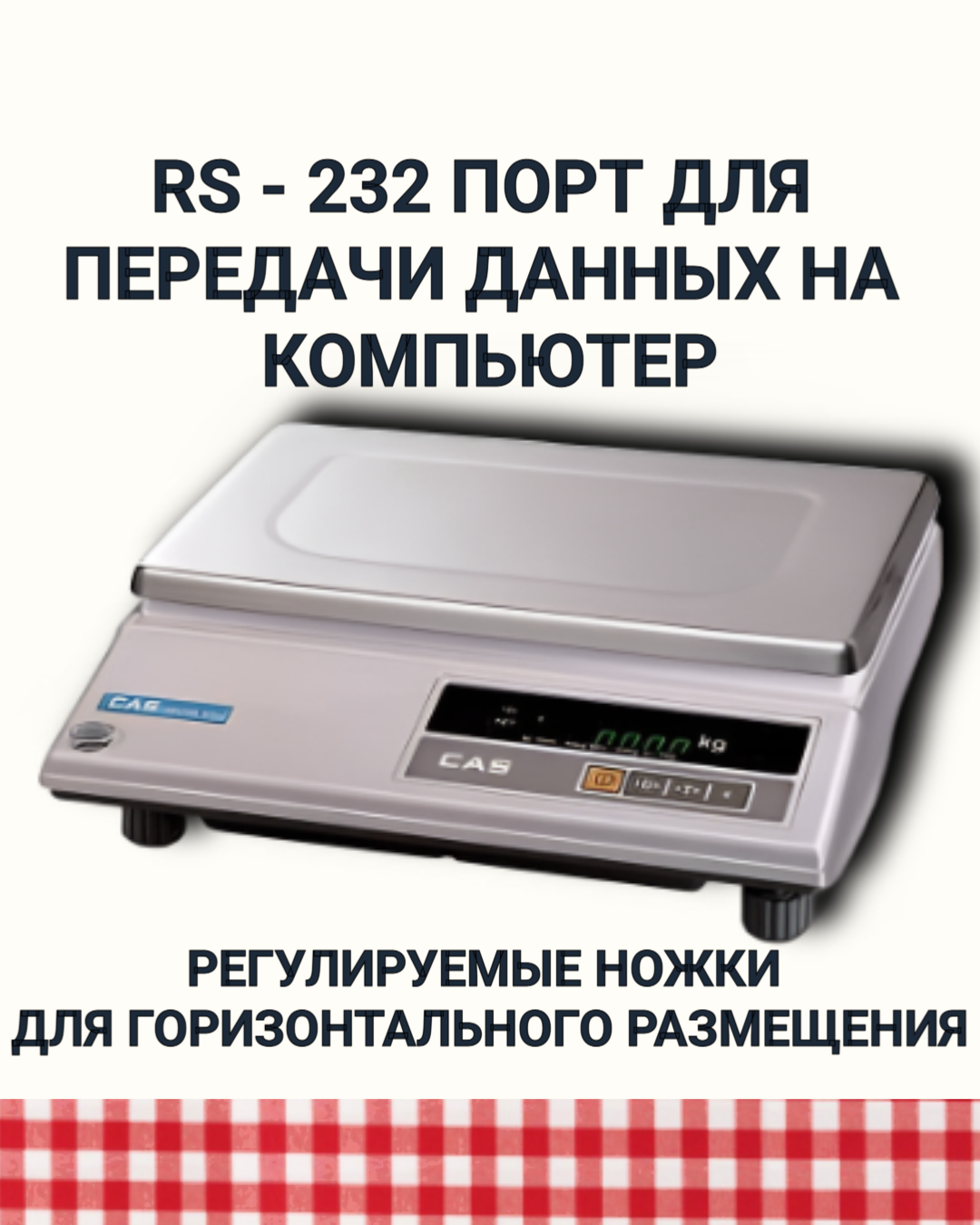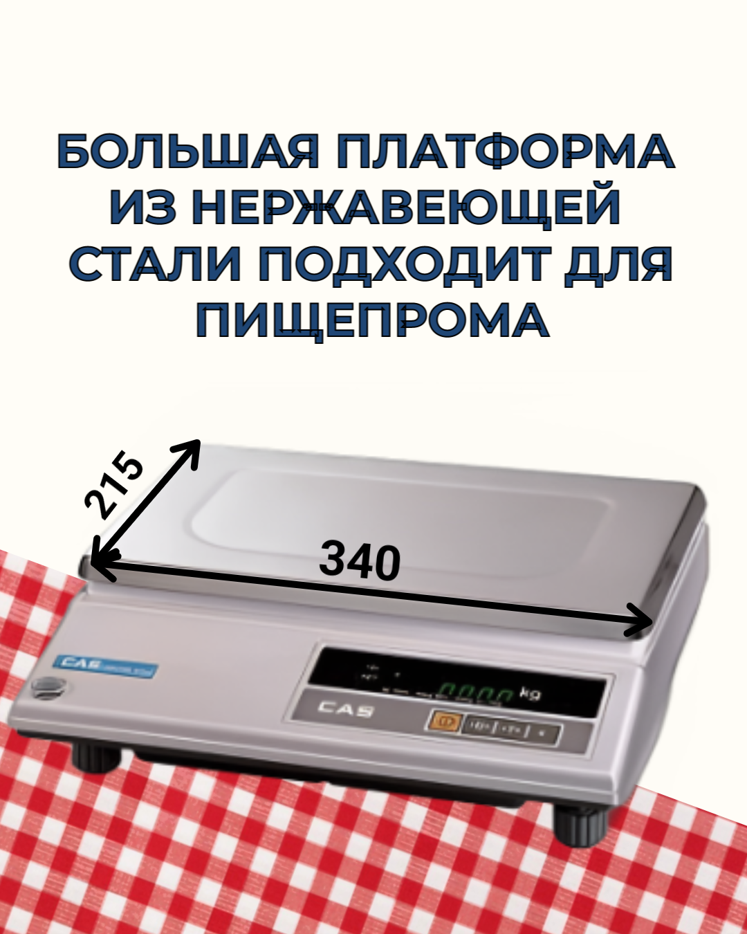 Весы CAS Весы фасовочные AD-25 до 25кг, точность 5г, RS-232, нержавеющая сталь