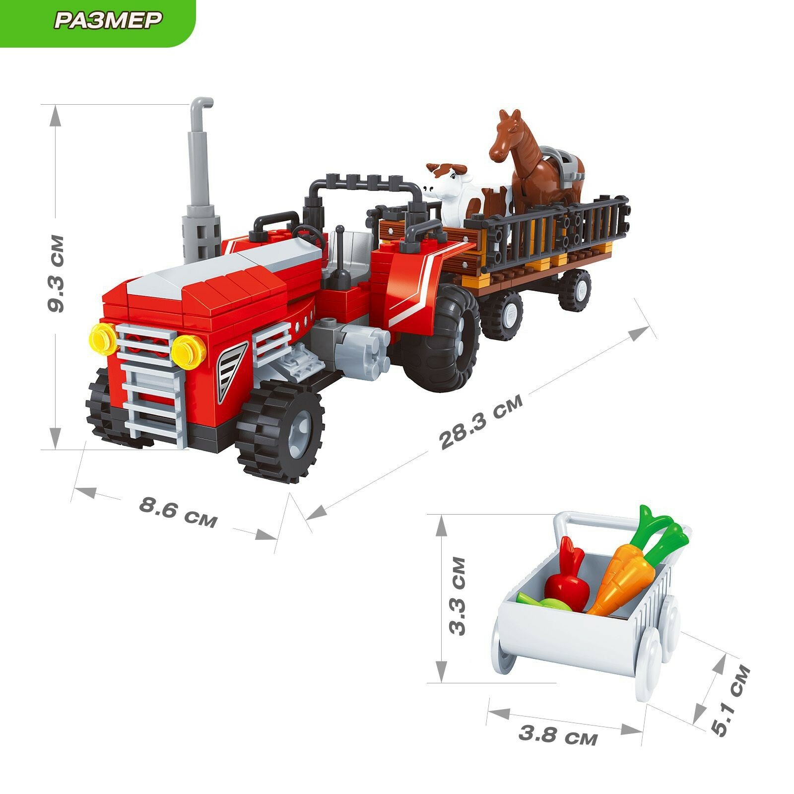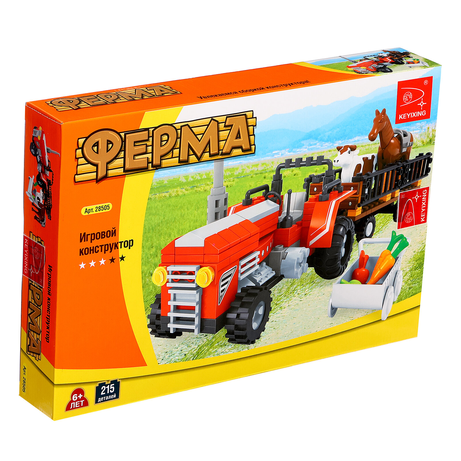 Конструкторы Конструктор Ферма "Трактор с животными" 215 деталей, 6 +, KEYIXING