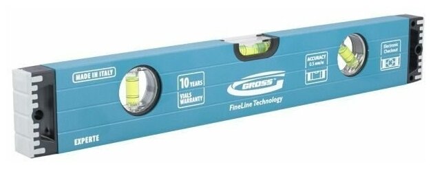 Лучшие цены. Алюминиевый уровень Gross 34324 длиной 400 мм, с усиленной конструкцией и ударопрочными заглушками, оснащен 3 глазками. Благодаря ему мастер сможет найти отклонения от горизонтали, вертикали или угла 45 градусов. Рассчитан на интенсивное использование, поэтому будет полезен в ходе строительных и ремонтных работ при укладке плитки, кирпича, заливке полов и других операций. Магазины в вашем городе.
