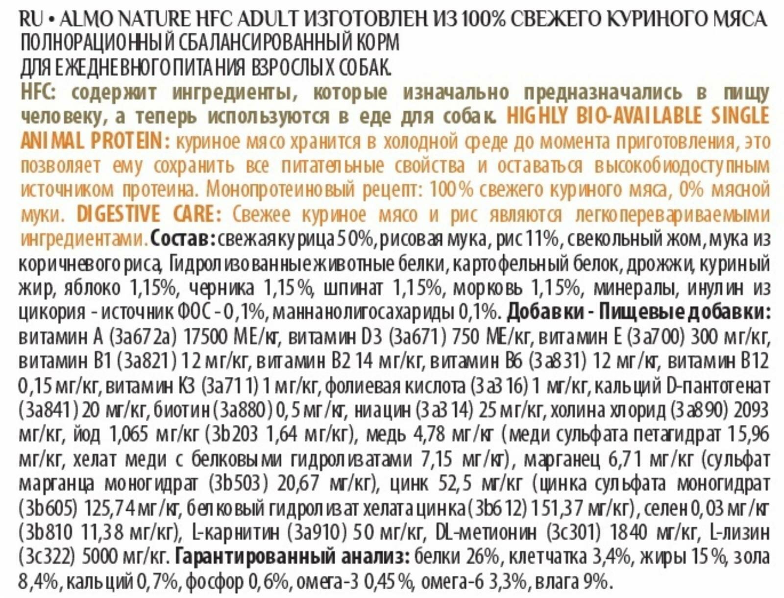 ALMO NATURE HFC XS-S ADULT CHICKEN для взрослых собак маленьких пород со свежей курицей (1,2 кг)
