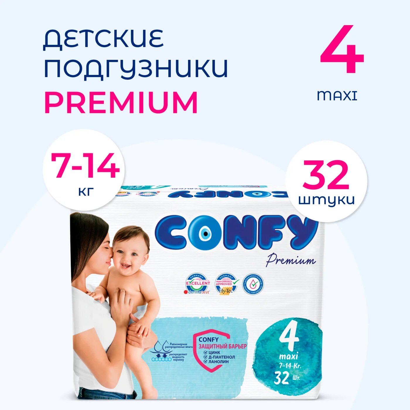Подгузники CONFY Premium 7-14 кг (размер 4) 32 шт