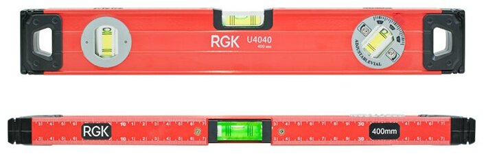 Лучшие цены. Пузырьковый уровень RGK U4040 применяется в сфере строительства и ремонта для определения отклонений по горизонтали и вертикали. Эта модель имеет три глазка, а также магнит для крепления инструмента на металлической поверхности. Есть линейка с шкалой, благодаря чему мастер может выполнять разметочные работы. Магазины в вашем городе.