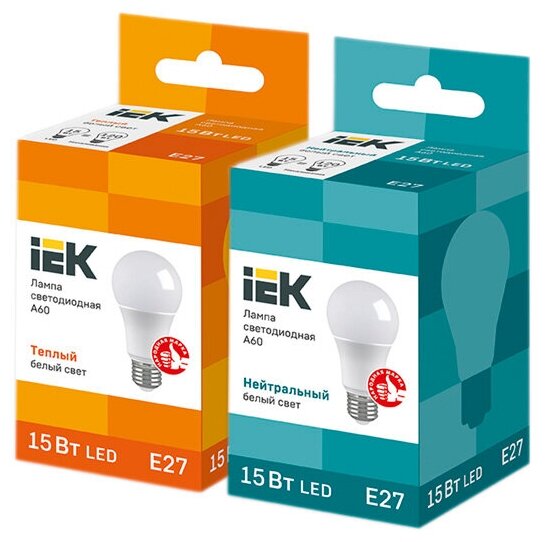 (2 шт.) Светодиодная лампочка IEK A60, груша, мощность 15 Вт, напряжение питания 220 В, цветовая температура 4000 К, нейтральный белый свет, световой поток 1350 Лм, цоколь E27, размер 60х131 мм 631 ₽ Подробнее