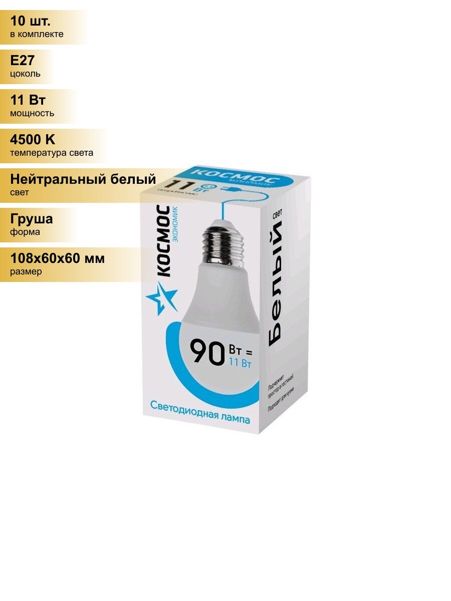 Лампочки (10 шт.) Светодиодная лампочка Космос ЛОН A60 E27 11W (870lm) 4500K 4K матов. 108x60 LkecLED11wA60E2745 8595 Нейтральный белый. Цоколь E27