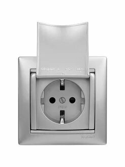 Розетки Розетка с заземлением и защитной крышкой 16А цвет алюминий 770122