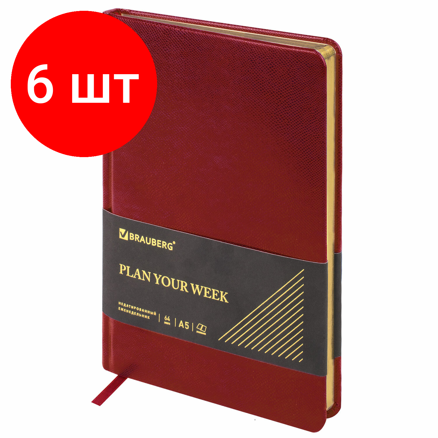 Комплект 6 шт, Ежедневник недатированный с резинкой А5 138х213мм под кожу красный BRAUBERG Metropoli, 113287 3 853 ₽ Подробнее