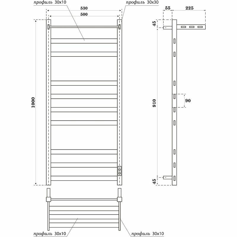Электрический полотенцесушитель Point Серии Меркурий П8 500x800 диммер справа, хром PN83858
