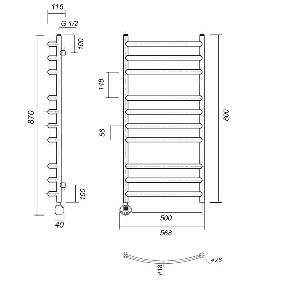 Полотенцесушители Полотенцесушитель электрический Domoterm Калипсо 50x80 П10 500x800 АБР EL античная бронза