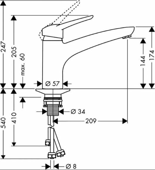 | Подвод воды | шланги / 835 мм / G 3/8" |