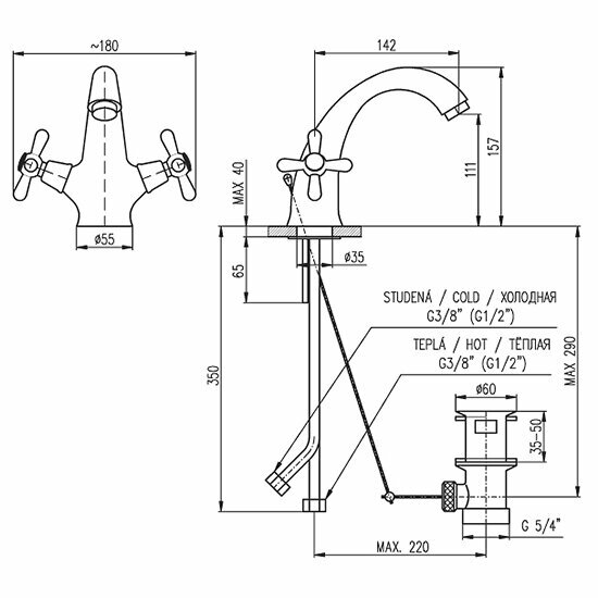 MK528.5 MORAVA RETRO - смеситель классический для умывальника RAV Slezak