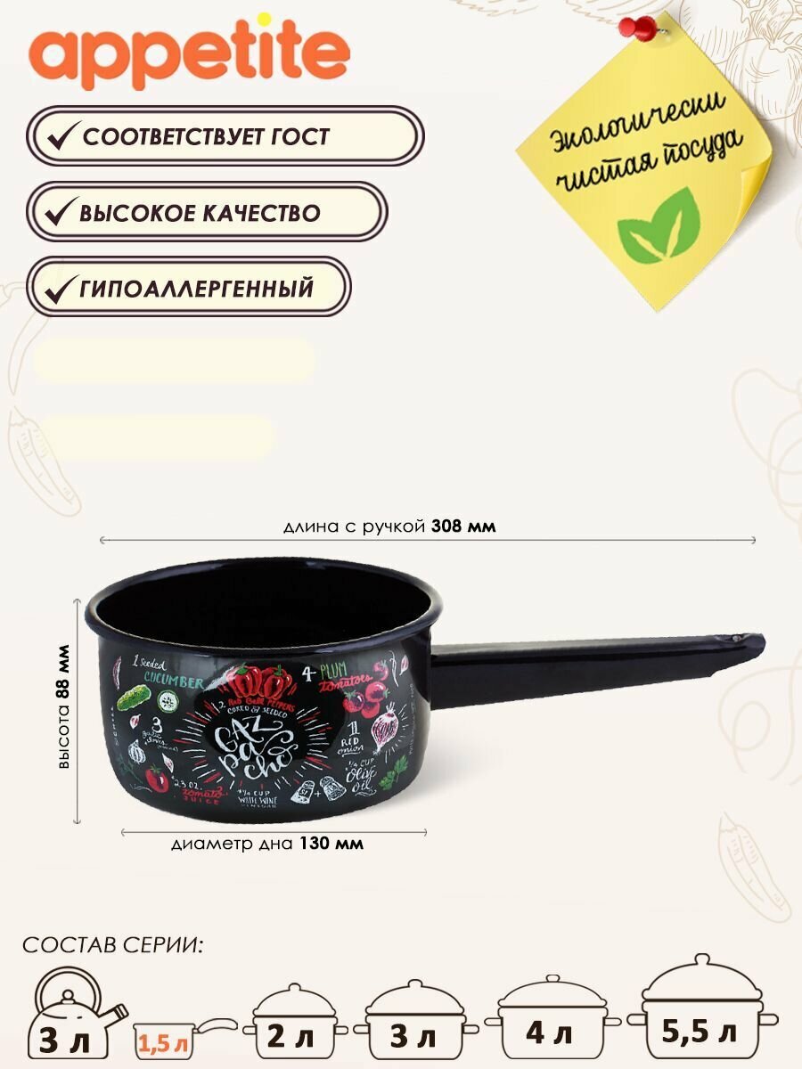 Кастрюля Ковш эмалированный 1,5л без крышки Gazpacho ТМ Appetite
