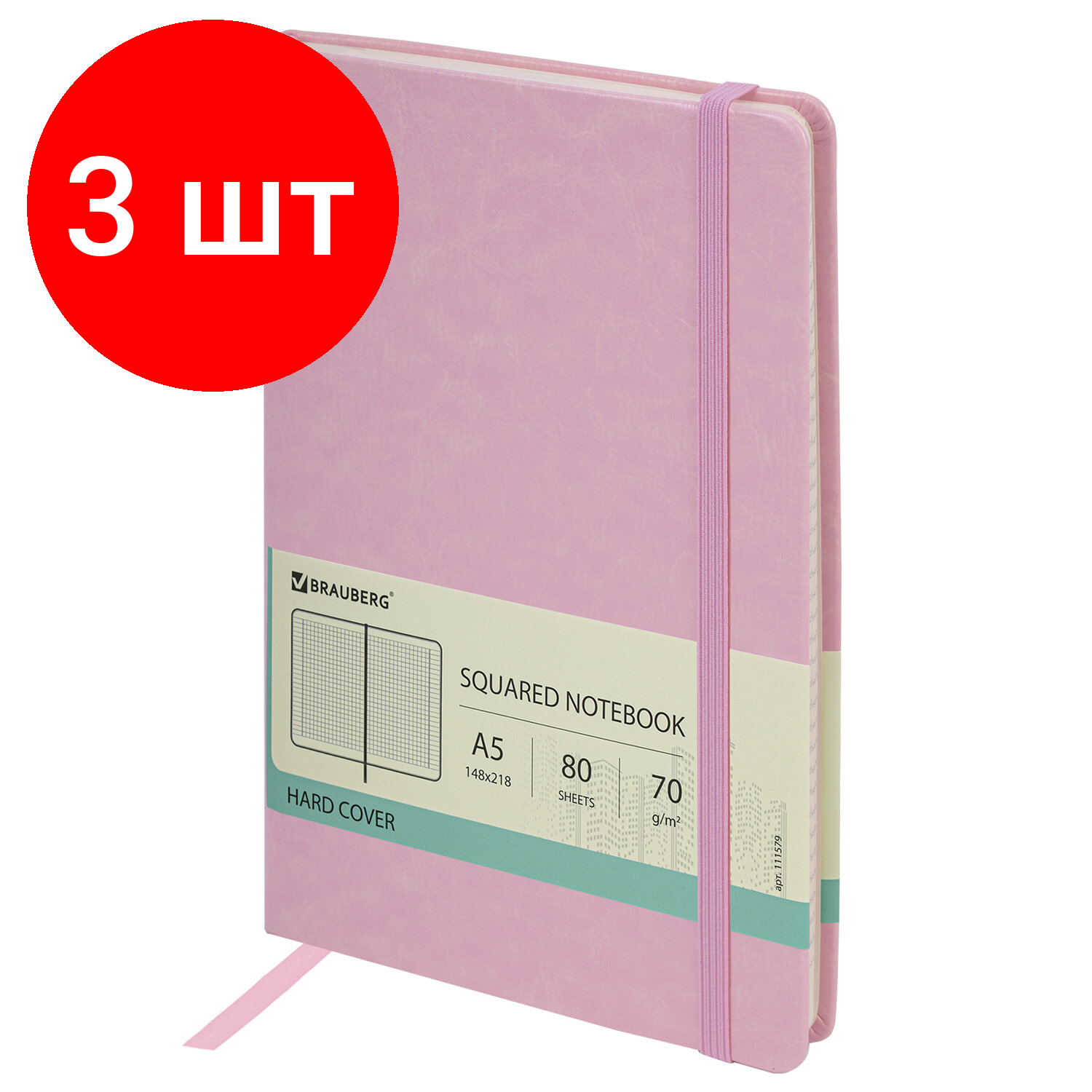 Блокноты Комплект 3 шт, Блокнот в клетку с резинкой А5 (148x218 мм), 80 л, под кожу розовый BRAUBERG "Metropolis Special", 111579