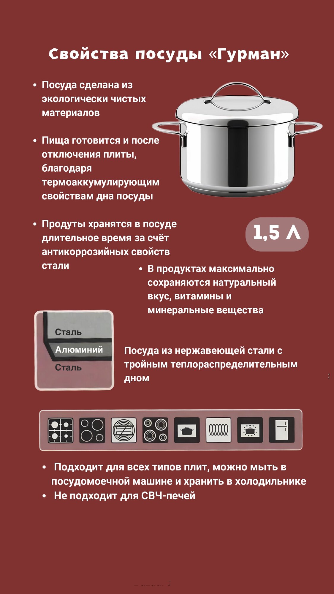 Гурман Кастрюля «Гурман Классик», 4 л, капсульное дно, металлическая крышка, индукция 8 873 ₽ Подробнее