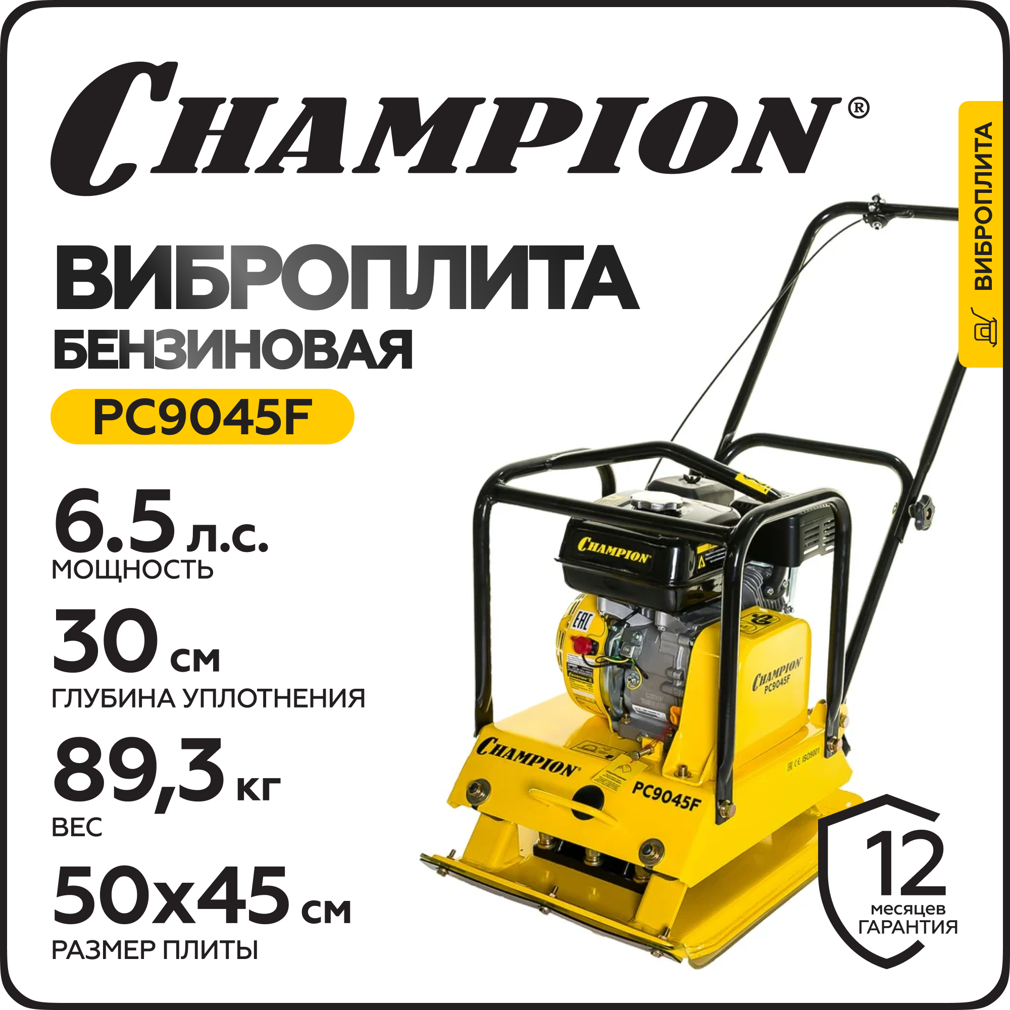Виброплита CHAMPION PC9045F 6.5лс 196см3 15кН гл.30см 416м2/ч 50x45см 90кг