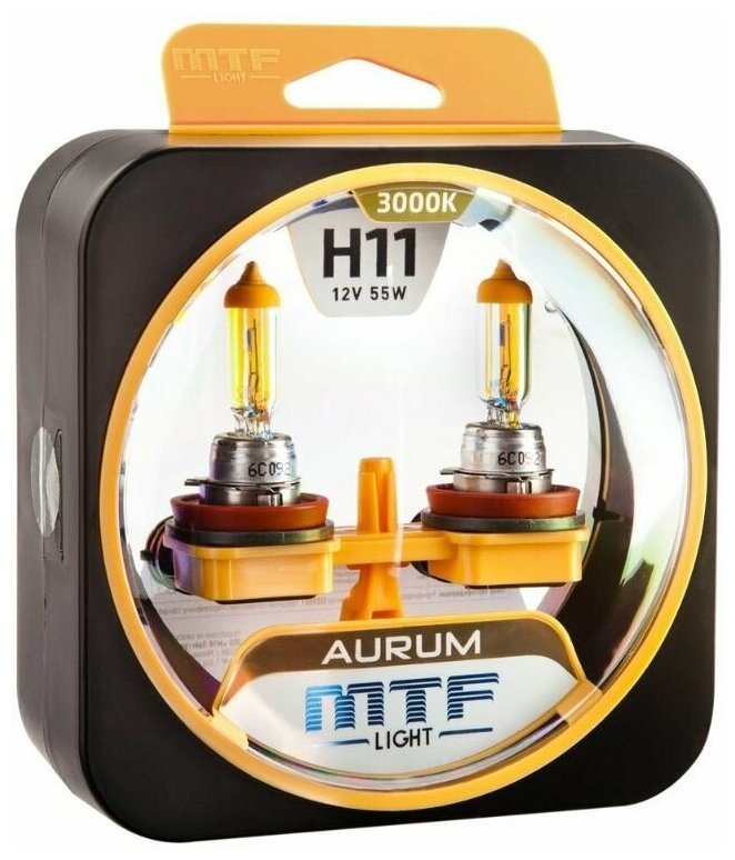 Комплект галогенных ламп MTF Light H11 Aurum 3000K, со специальным покрытием излучают золотисто-желтый свет. (2шт.)