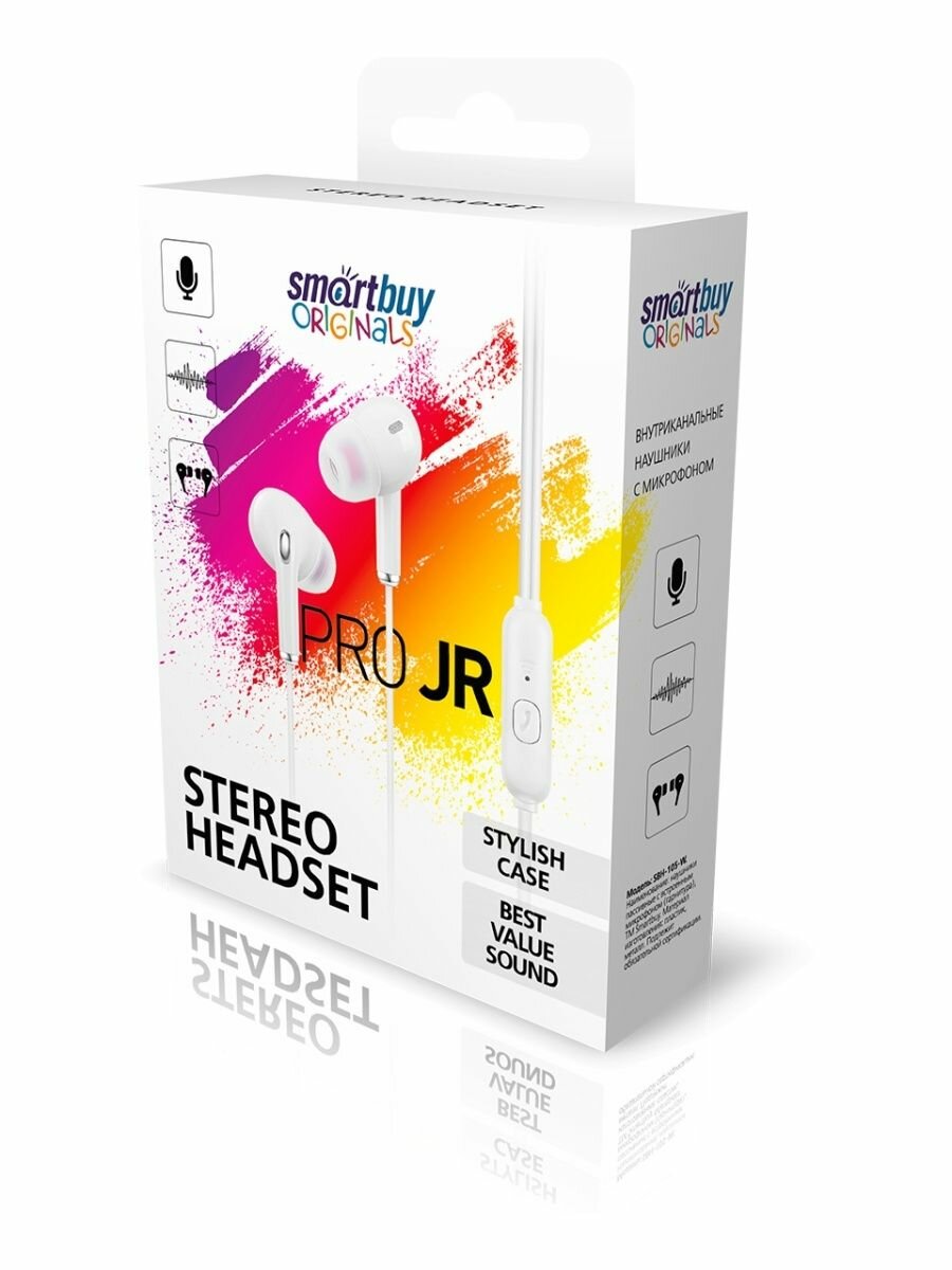 Наушники Наушники проводные с микрофоном белые Smartbuy Pro JR