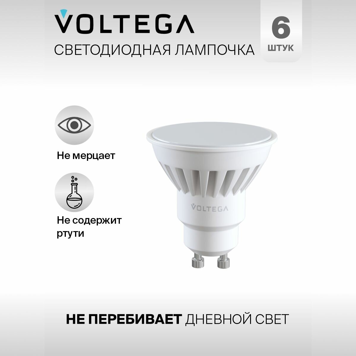 Лампочки Лампочка светодиодная GU10 форма cофит 10W нейтральный белый свет Voltega Сeramics MR16 4000K 1 шт. Упаковка 6 шт.