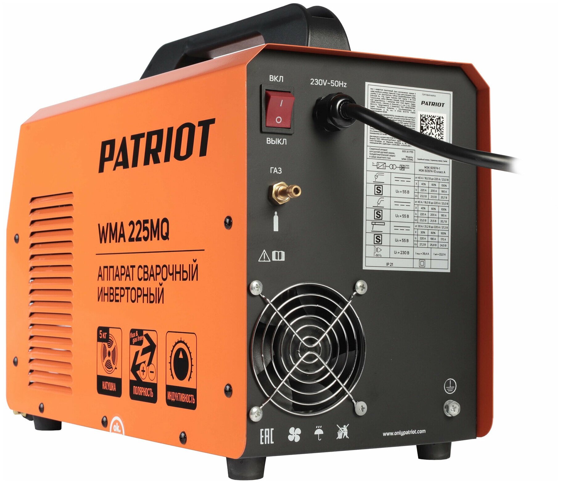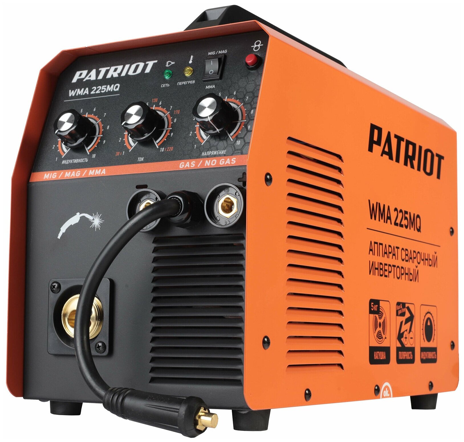 Аппарат сварочный инверторный PATRIOT WMA 225MQ /MIG/MAG/MMA, полуавтоматич. сварка в среде газа/