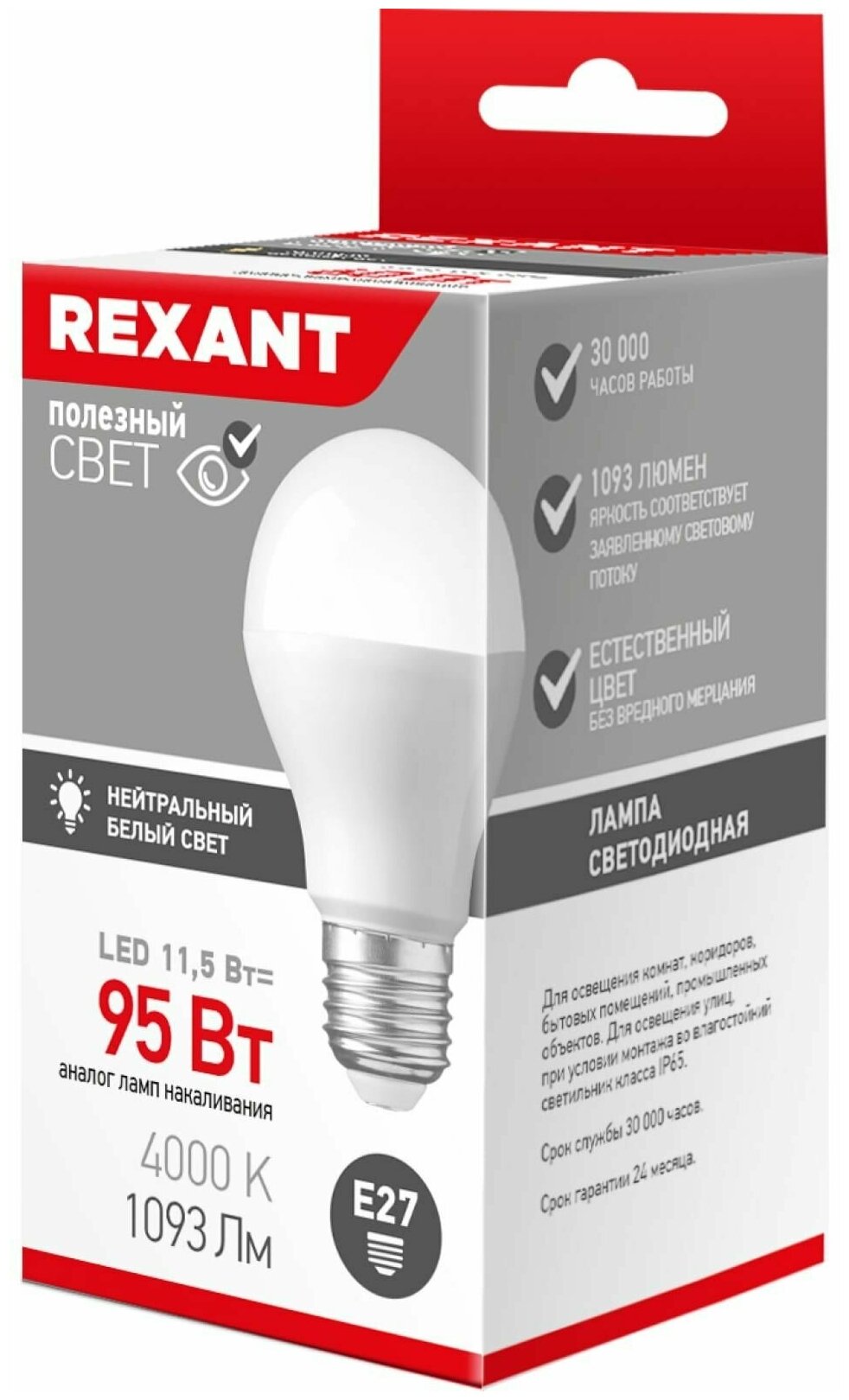 Лампа светодиодная REXANT Груша A60 11.5 Вт E27 1093 Лм 4000 K нейтральный свет (3 шт./уп.)