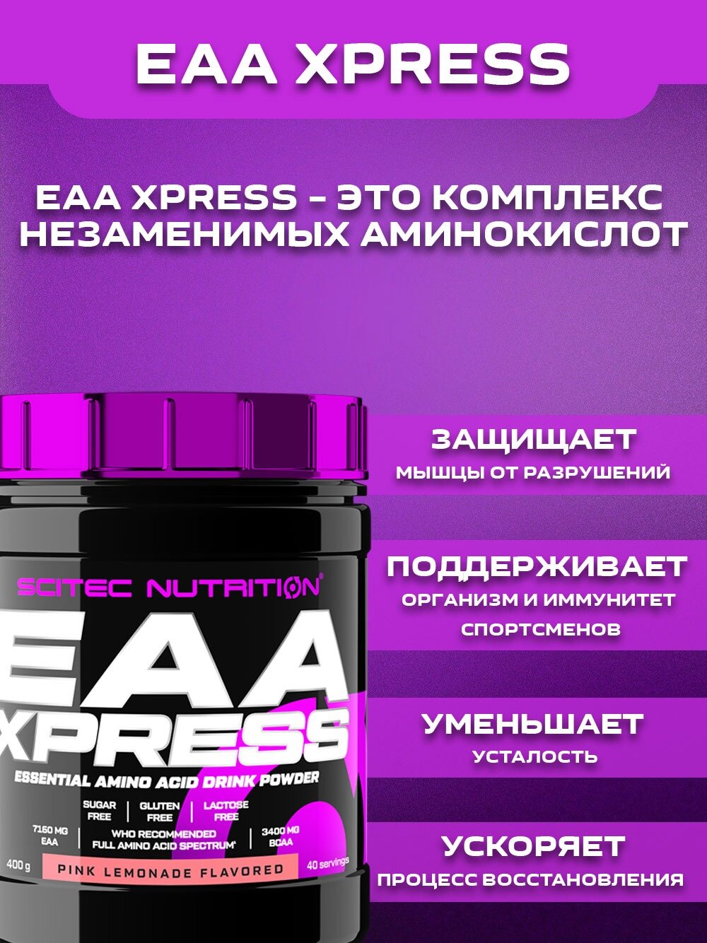 Аминокислоты Комплекс аминокислот Scitec EAA Xpress, порошок, без сахара, 40 порций, 400г, розовый лимонад