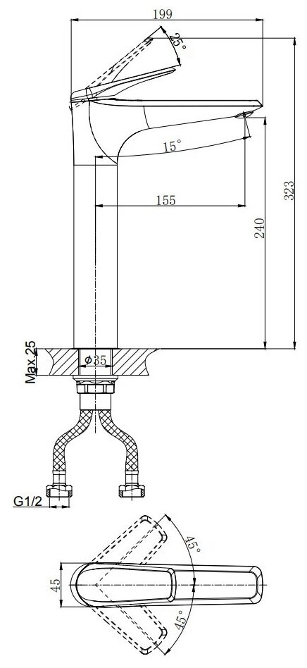 Смеситель для умывальника/ накладной раковины/ раковины-чаши черный RUSH Nevis NE1735-11blаск