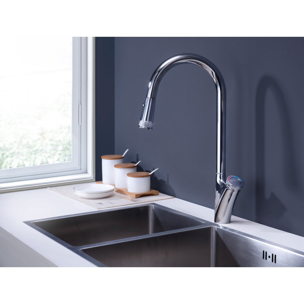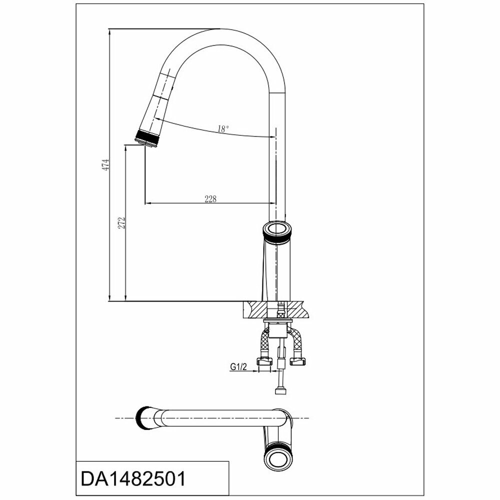 Смеситель для кухни 35 кнопочный картридж D&K DA1482501 выс.пов.излив,п/шпильку выдвижная лейкахром