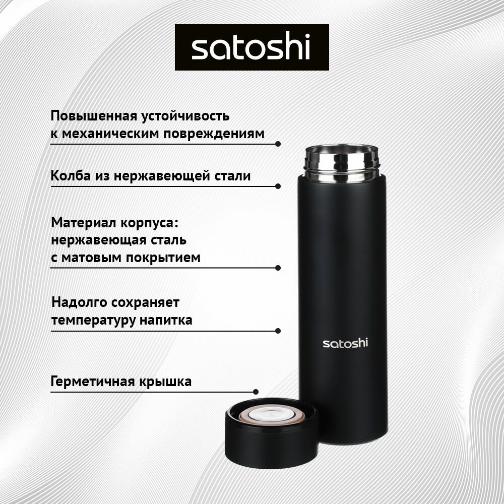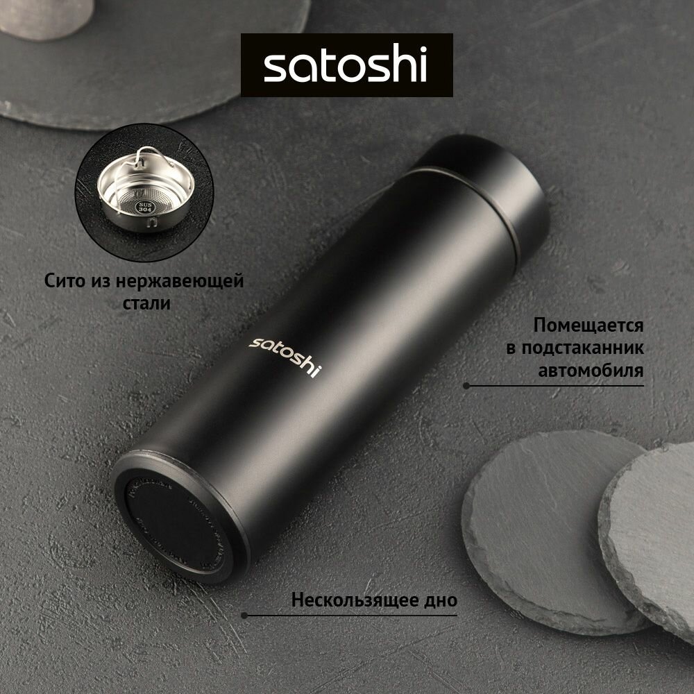 Термос для чая 800 мл SATOSHI, термос для напитков, нержавеющая сталь, черный 1 303 ₽ Подробнее