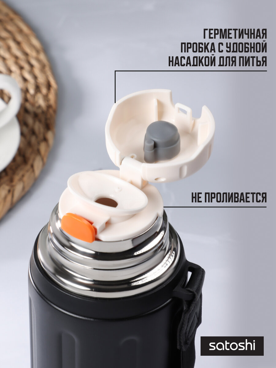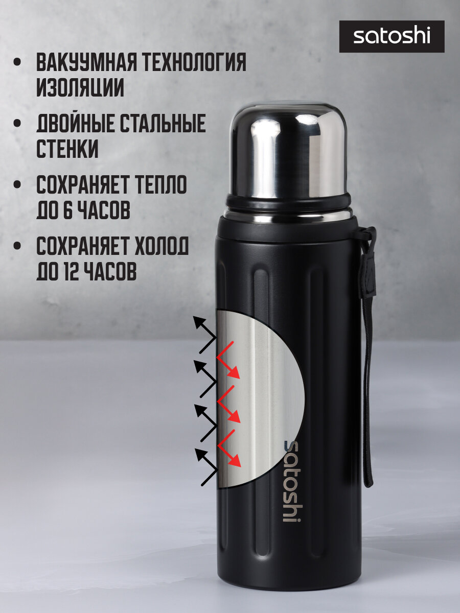 Термосы Термос для чая 800 мл SATOSHI, термос для напитков, нержавеющая сталь, черный