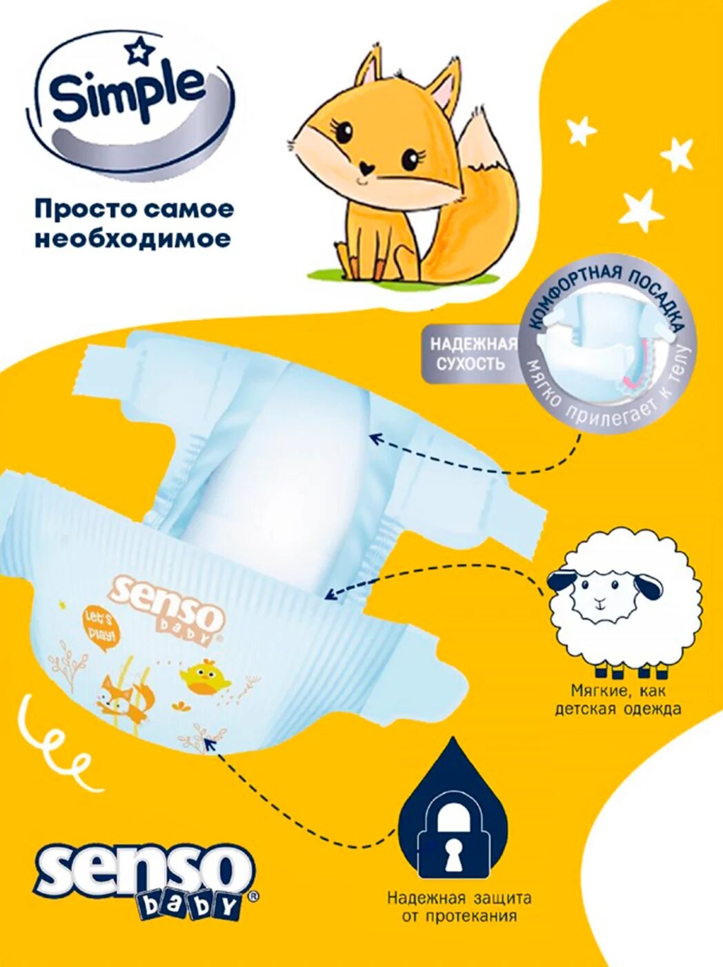 SENSO/сенсо Baby Подгузники для детей «SIMPLE» S 4-50 (7-18кг) 50шт
