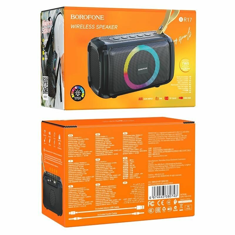 Колонка Borofone BR17 LED BT/microSD/USB/AUX 1200mAh черная