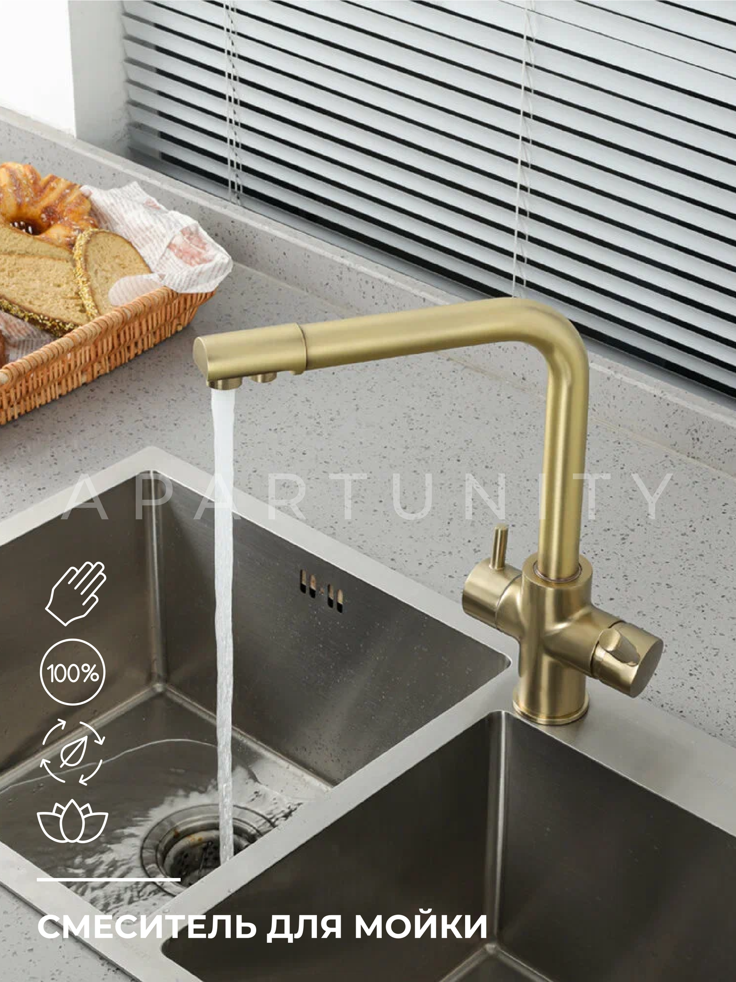 Смеситель для кухни Frap F43550-3 с подключением фильтра, черный/золото 10 218 ₽ Подробнее