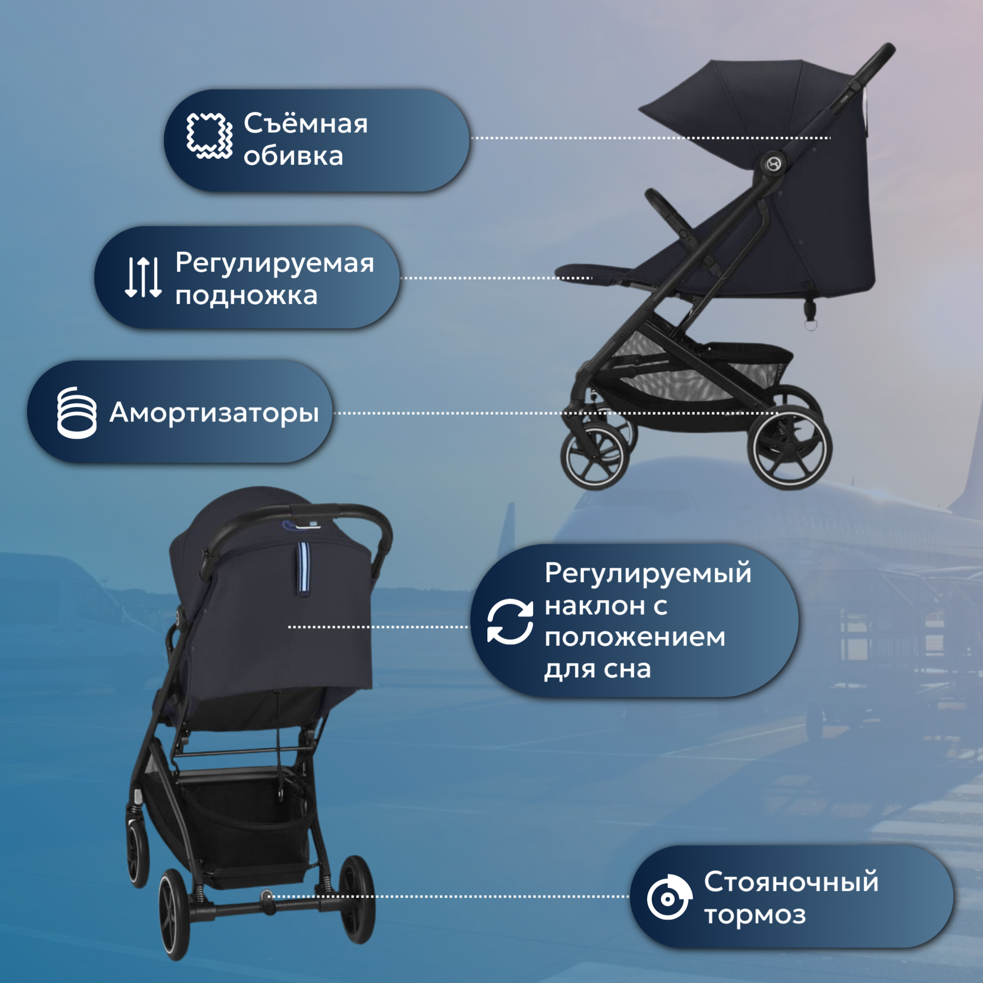 Коляска прогулочная Cybex Beezy Dark Blue, с бампером и дождевиком 48 948 ₽ Подробнее