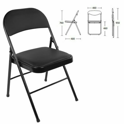 Стул складной Brabix для дома и офиса, "Golf Plus CF-003 Комфорт", черный каркас, кожзам черный (531566)