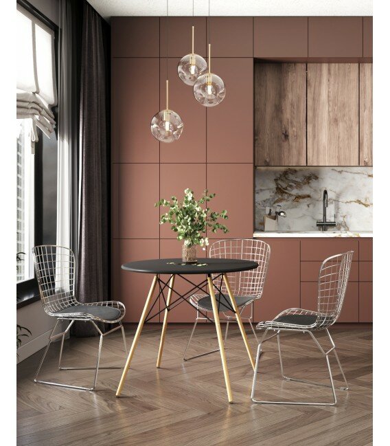 Стул обеденный Bertoia, черный, с черной подушкой