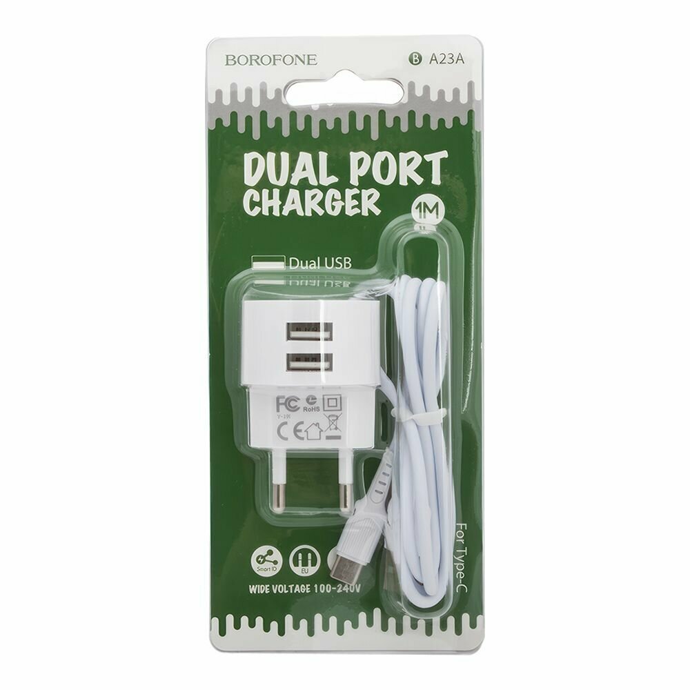 Сетевое зарядное устройство (СЗУ) Borofone BA23A (2 USB) + кабель Type-C, 2.4 А, белый