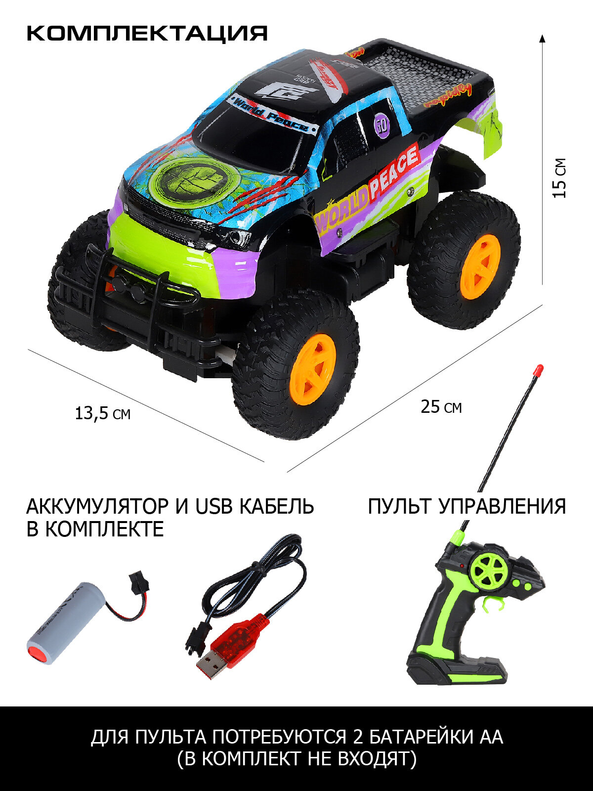 Радиоуправляемая машина Радиоуправляемая машина Монстр-трак с 3D подсветкой корпуса, 4 канала, М1:16, пульт управления, зеленый, JB0405270