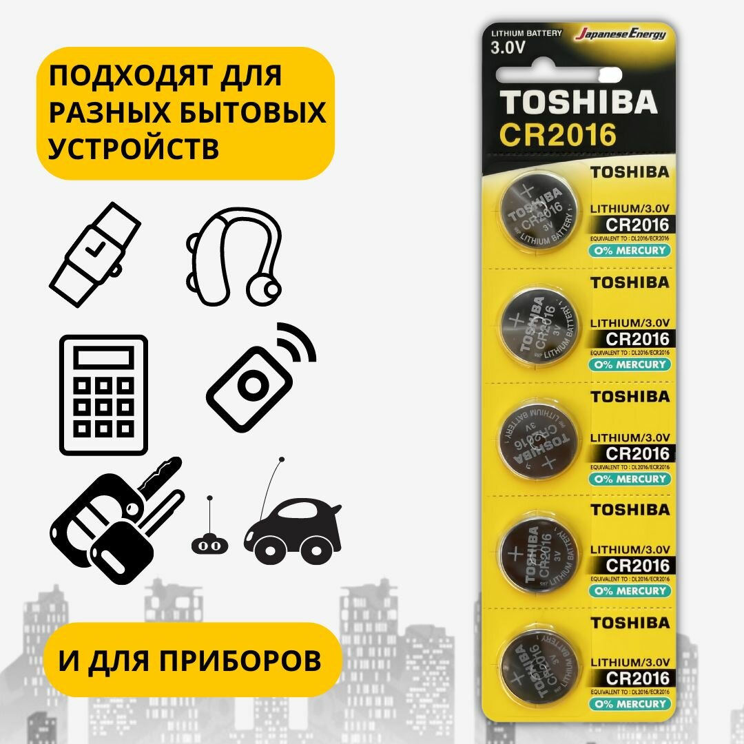 Аккумулятор / батарейка Батарейки Toshiba литиевая таблетка CR2016 (DL2016), 5 шт. в блистере