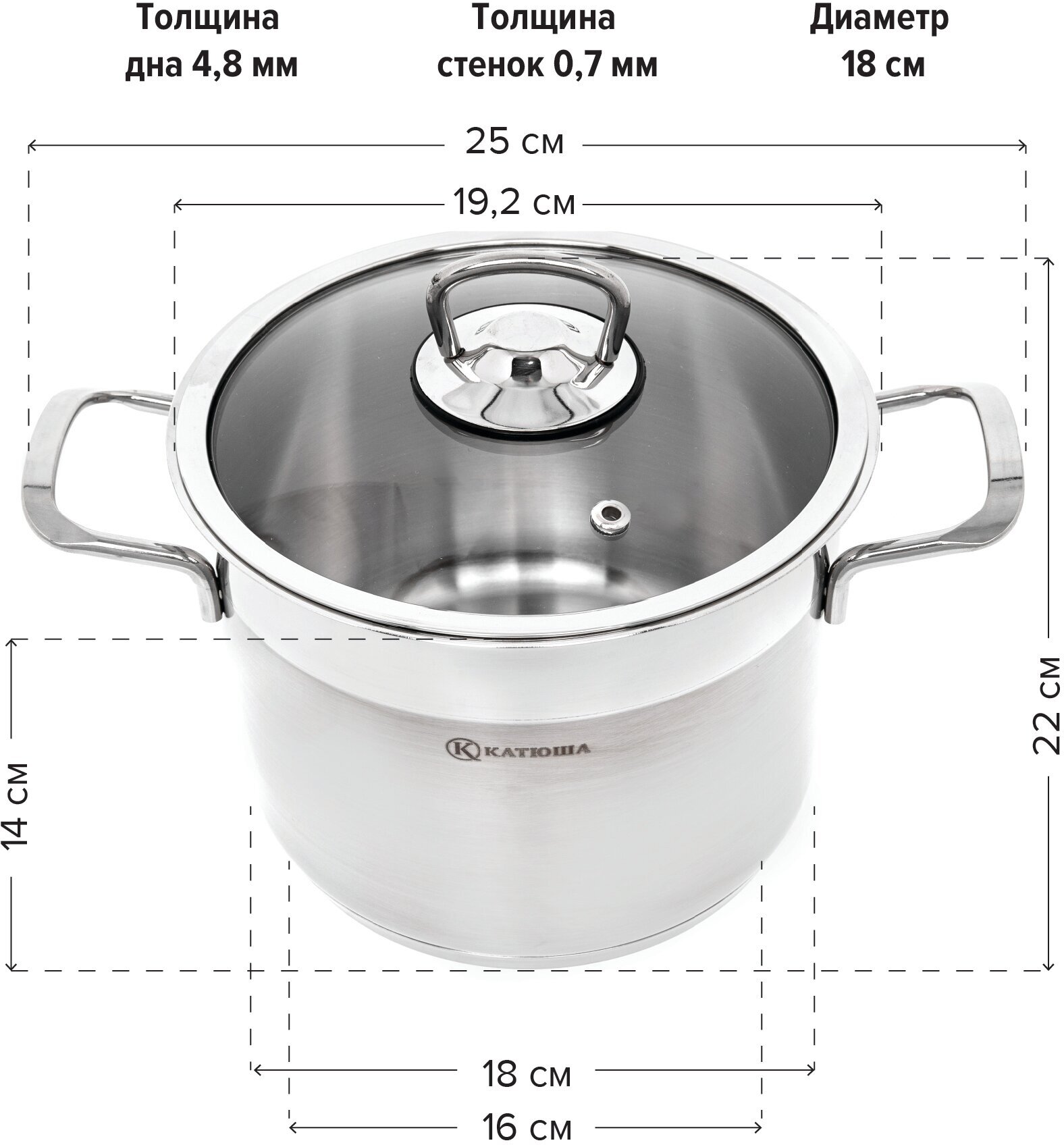 Кастрюля катюша софия 3,2л 18 см со стеклянной крышкой, индукция