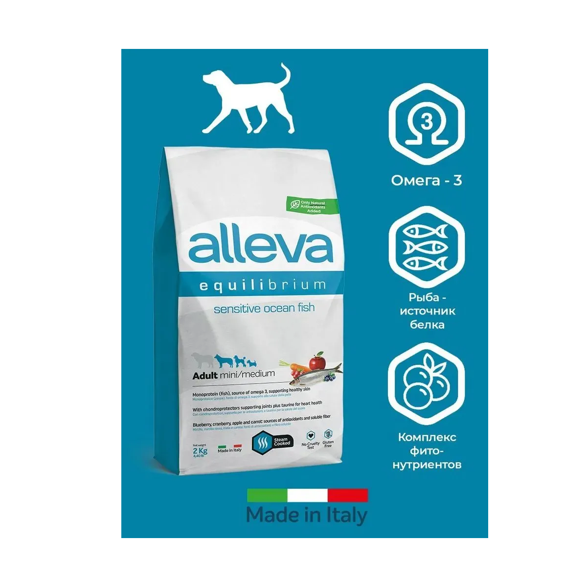 Сухой корм для собак ALLEVA EQUILIBRIUM SENSITIVE LAMB AND OCEAN FISH ADULT MINI/MEDIUM Аллева Корм для взрослых собак мелких и средних пород Эквилибриум Сенситив с ягненком и океанической рыбой 2 кг