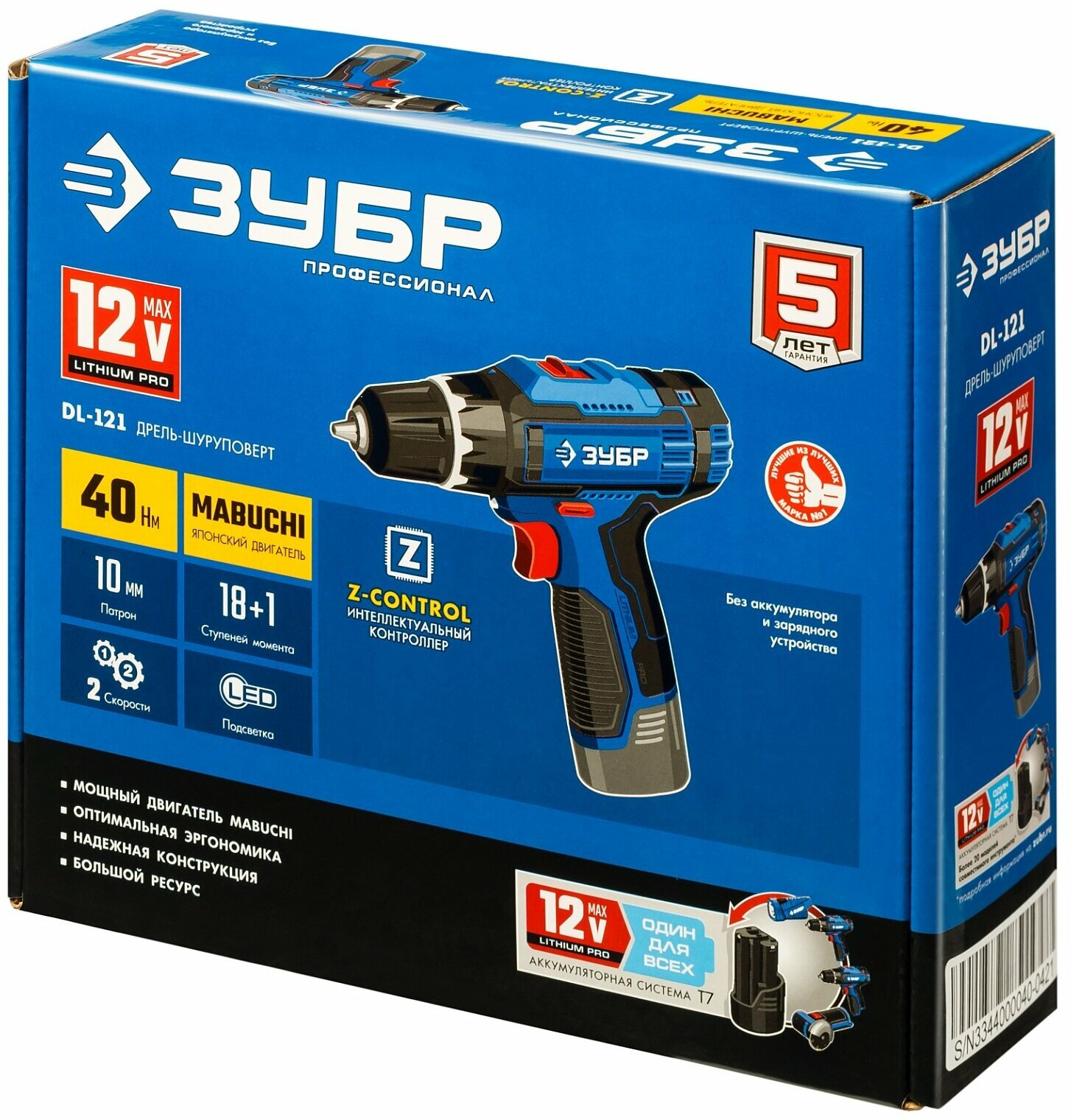 ЗУБР Т7, 12 В, 40 Н·м, без АКБ, дрель-шуруповерт, Профессионал (DL-121)