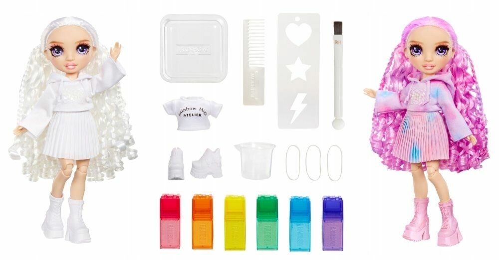 Куклы Кукла Rainbow High Watercolor & Create - Кукла с фиолетовыми глазами в белом наряде, который можно раскрасить смываемыми красками - Рейнбоу Хай 507581