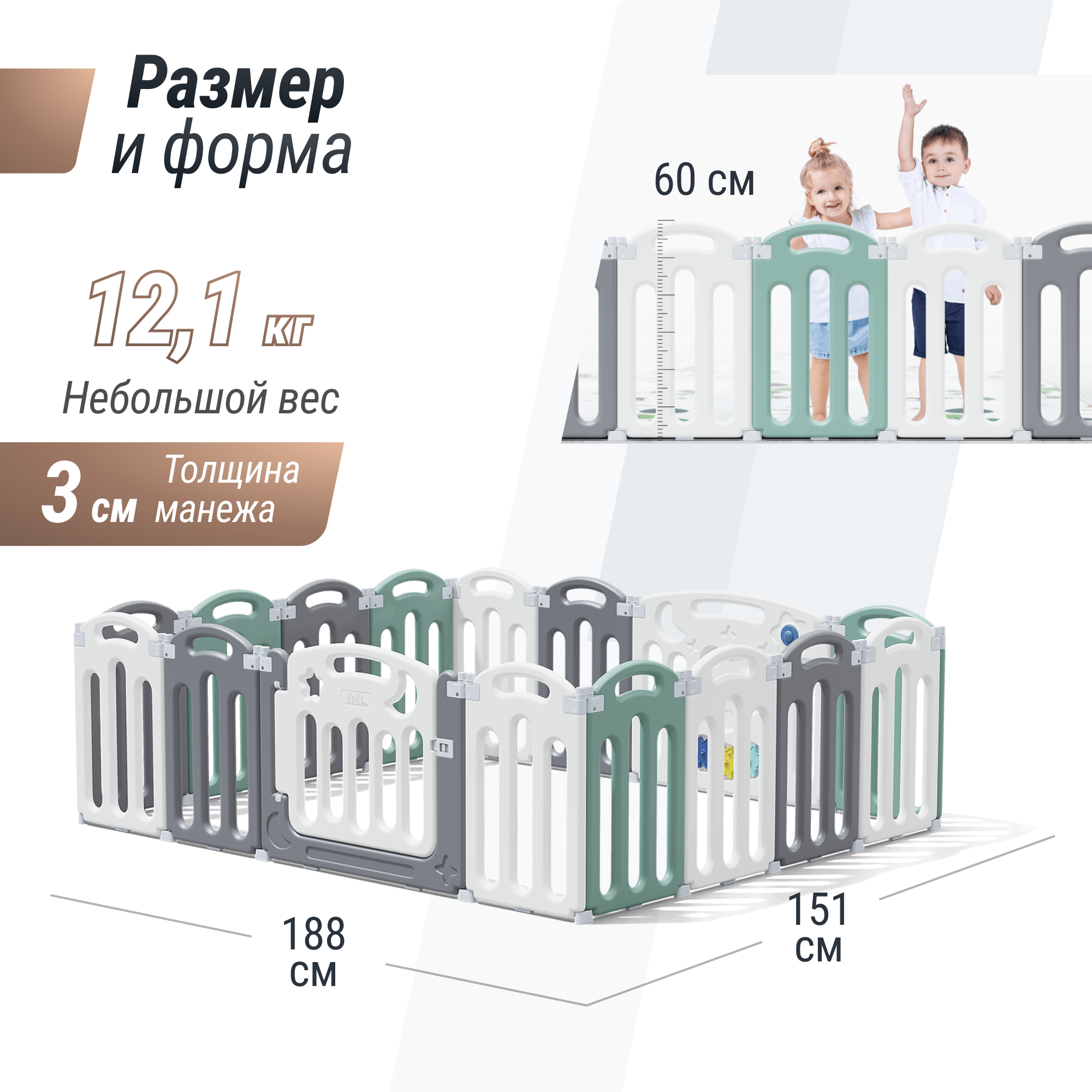 Манежи Манеж UNIX Kids "Simple" Color 188x151 см, игровой комплекс для дома, для улицы