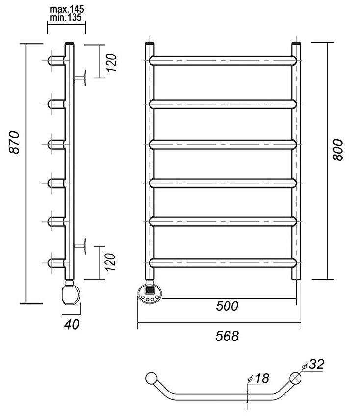 Полотенцесушитель Полотенцесушитель электрический Domoterm Лаура 50x80 П6 500x800 EL хром