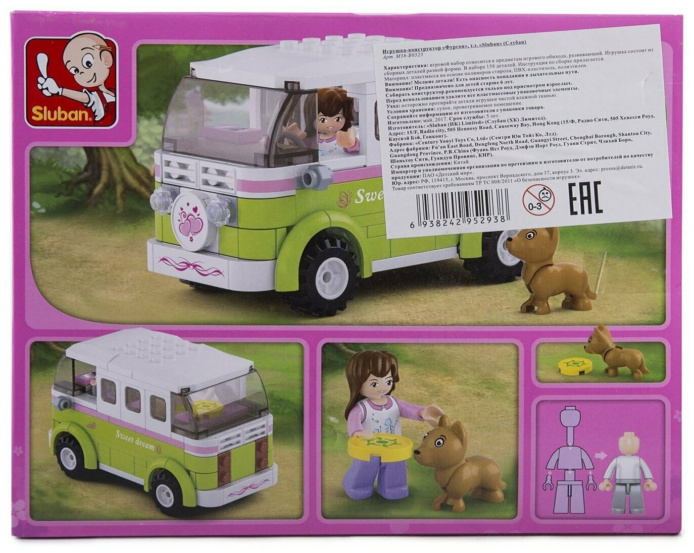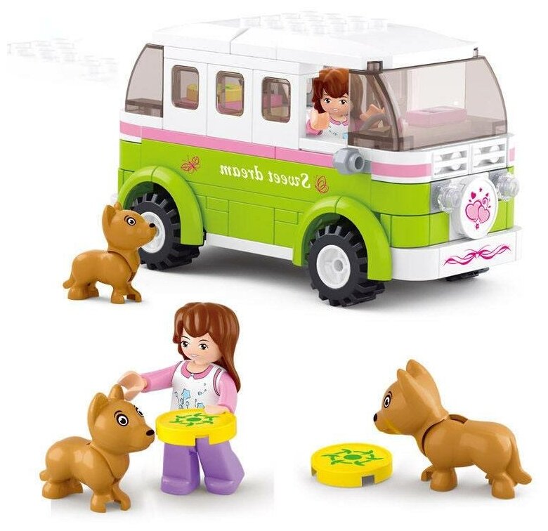 Конструкторы Конструктор SLUBAN 158 деталей. Розовая мечта. Микроавтобус (+фигурки, в коробке, от 6 лет) M38-B0523, (Shantou Chenghai Hongyuansheng Toys Industrial Co. LTD)
