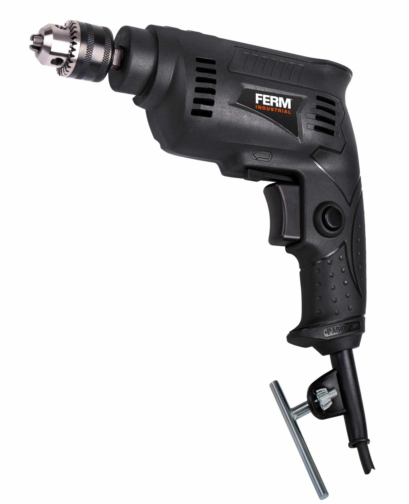 Дрели и шуруповерты Безударная дрель FERM PDM1047P, диаметр сверла от 0,5 мм, ключевая, 1 скорость, 230Вт, чёрная