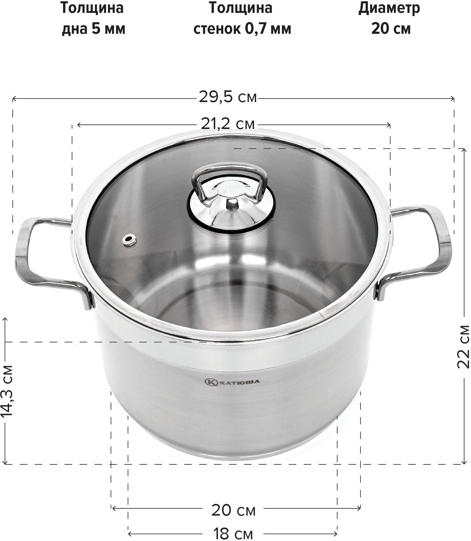 Кастрюля катюша София нержавеющая сталь, 20x14,7 см, 4,5 л, стеклянная крышка 9920-400-0